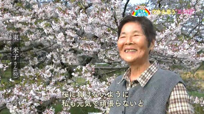 (東米子さん・83)「年々元気になっている、この桜は。桜に負けないように、私も元気に頑張らないと」