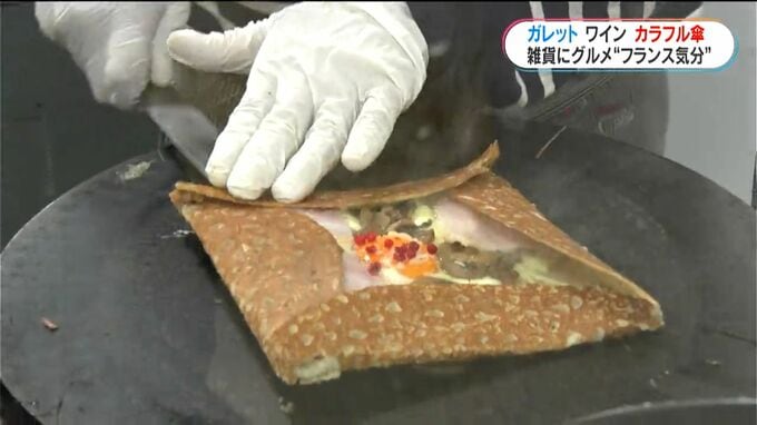 こちらは、フランスの伝統料理「ガレット」。そば粉を使った生地にたまごやハムなどが包まれています。