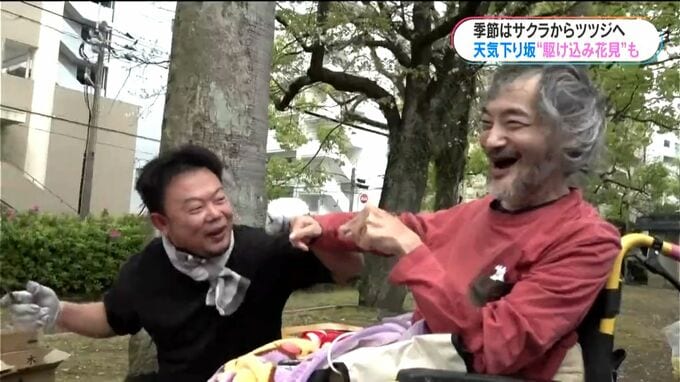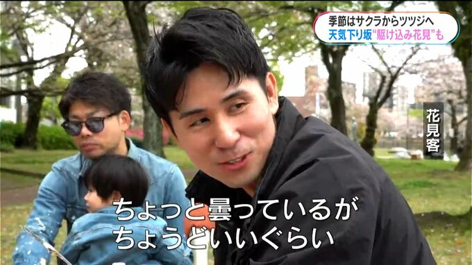 (記者)「甲突川の桜は葉っぱが目立ってきました。そうした中ですが、きょうもお花見を楽しむ人たちがいらっしゃいます」