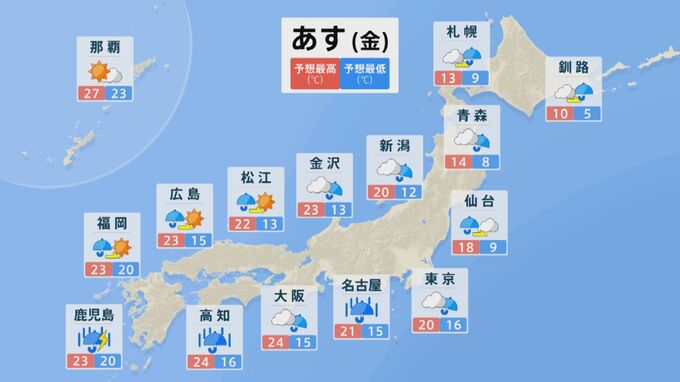 低気圧が発達しながら日本海を通過 10日(金)は九州から北海道まで雨 北陸は10日未明から明け方を中心に雨脚強まる 最新の雨と風シミュレーション 北陸放送 2026年4月9日(木) 20:35 国内 10日は、九州から東海にかけての太平洋側では雨の降り方が強まるでしょう。 北陸でも、9日の夜遅くから雨が本格的に降り、10日の夕方近くまで断続的に降る見込みです。 週末の土曜日日曜日は、低気圧が抜けて全国的に天気は回復するでしょう。