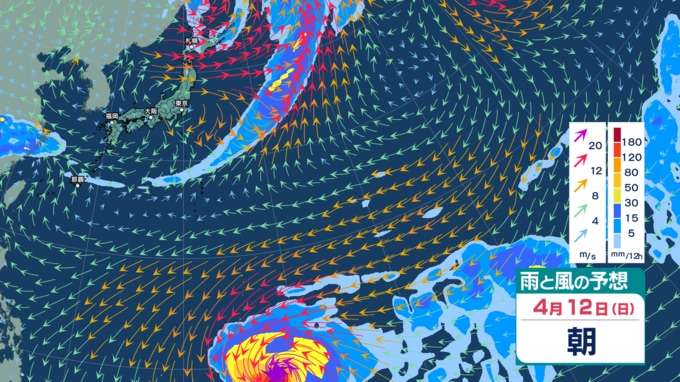 【台風情報】13日に「非常に強い勢力」にまで発達か 10日にも台風に変わる見込みの熱帯低気圧a=“台風のたまご” 935hPaにまで発達で北上の可能性 最新の雨・風シミュレーション(4月20日まで) 青森テレビ 2026年4月9日(木) 21:42 国内 【4月12日】大雨・風の予想シミュレーション【11日先まであり】 【雨・風の予想シミュレーションをまとめて見る】 (4月9日~10日、11日~12日、13日~14日、15~16日、17日~18日、19日~20日) 【この記事を最初から読む】