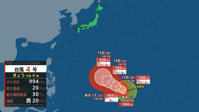 気象庁によりますと、きょう(10日)午前3時に「台風4号(シンラコウ)」が発生したということです。