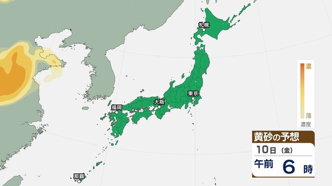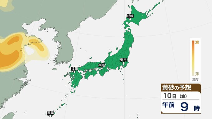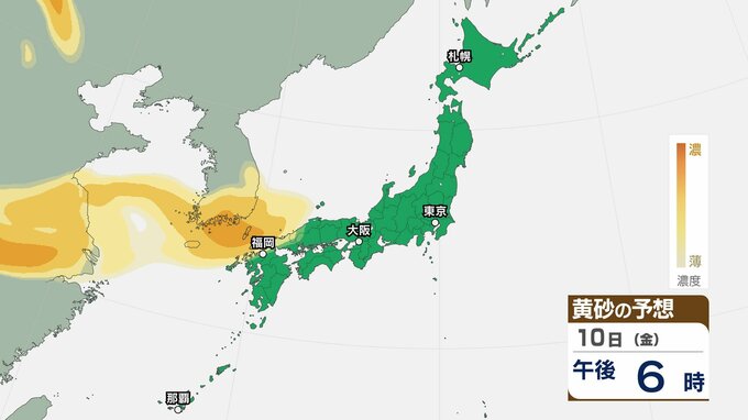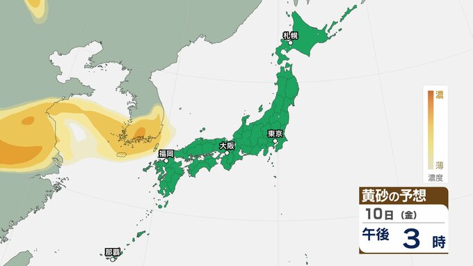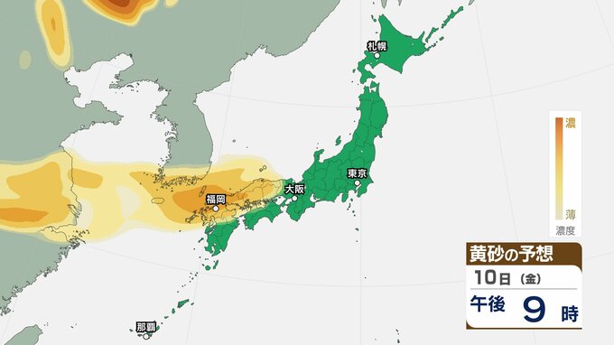 【黄砂情報】きょう10日(金)からしばらくの間「日本列島」に飛来か…九州・中国・四国・近畿・東海・北陸・関東・東北 広い範囲で影響の可能性 10日(金)~13日(月)黄砂シミュレーション(あすがピーク予報)【気象庁 10日現在】 RSK山陽放送 2026年4月10日(金) 08:50 国内 天気 10日(金) ▶10日(金)~13日(月)黄砂シミュレーション画像 ▶10日(金)~13日(月)黄砂シミュレーション画像