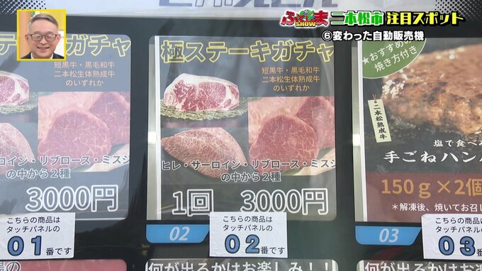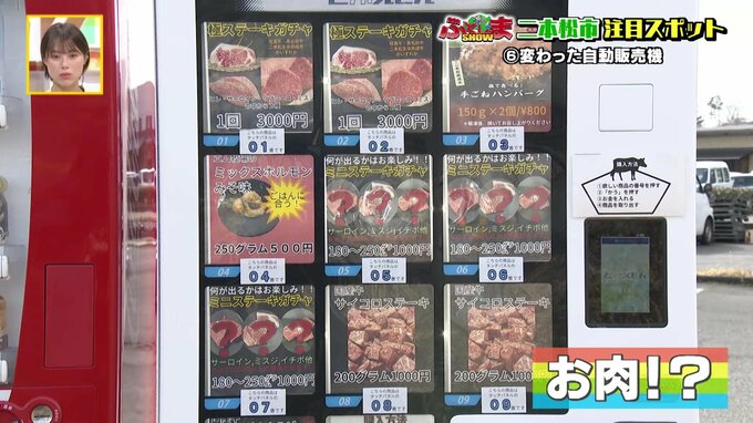 二本松市内を取材していて思わず足が止まったのが、路沿いに設置されたお肉の自動販売機です。