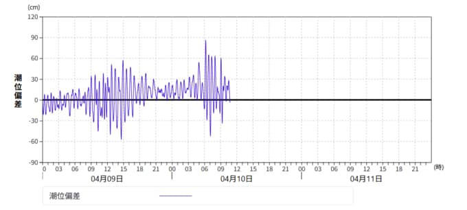 この海面の昇降は副振動と呼ばれ、湾内や海峡などで時々発生しま