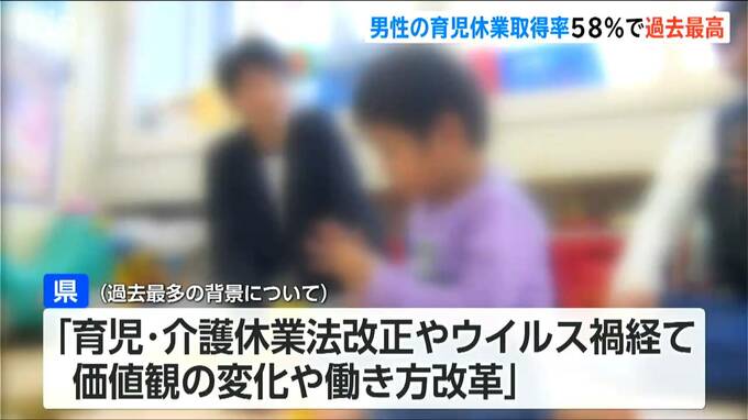 取得率が大幅に上昇多した背景について県は「育児・介護休業法の改正や、ウイルス禍を経て価値観が変化したり、働き方改革が進んだりしたため」と見ています。