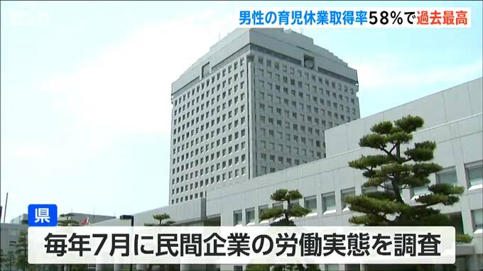 昨年度の新潟県の調査で、民間の事業所で働く男性の育児休業取得率が、およそ58パーセントあまりと過去最高となったことが分かりました。