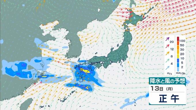 【春の嵐】近畿地方などで急な強い雨、落雷や激しい突風に夜遅くまで注意 北海道では日曜日にかけ暴風高波のおそれ【雨と風シミュレーション 気象庁】 毎日放送 2026年4月10日(金) 12:16 国内 天気 13日の降水と風の予想(下に表示)