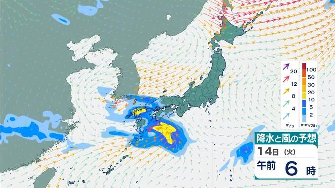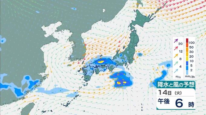 【春の嵐】近畿地方などで急な強い雨、落雷や激しい突風に夜遅くまで注意 北海道では日曜日にかけ暴風高波のおそれ【雨と風シミュレーション 気象庁】 毎日放送 2026年4月10日(金) 12:16 国内 天気 14日の降水と風の予想(下に表示)