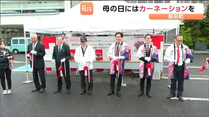 柴田町の「JAみやぎ仙南」では10日、カーネーションの生産者や郵便局などの関係者が参加し、テープカットをして初出荷を祝いました。柴田町では東北でも有数の生産地で8軒の農家が、シーズン中に約6万鉢のポットカーネーションを出荷します。