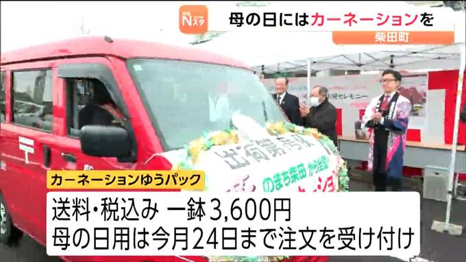5月の母の日を前に4月10日、宮城県柴田町では生産農家が丹精込めて作ったカーネーションのゆうパックの第一便が発送されました。