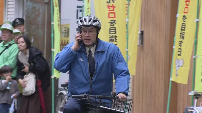 4月から始まった自転車の交通違反への青切符の適用を知ってもらうための交通安全キャンペーンが北九州市八幡西区で実施されました。