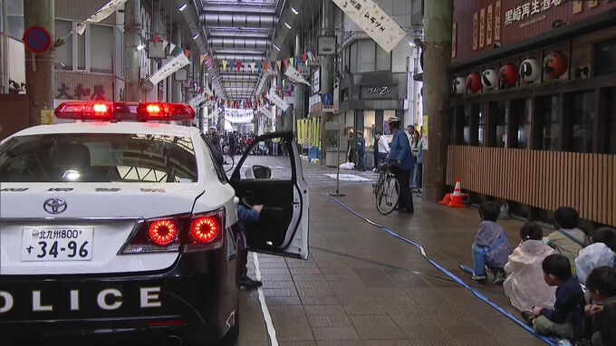 北九州市八幡西区の商店街で行われた交通安全キャンペーンには、警察官や高校生、小学生など約200人が参加しました。