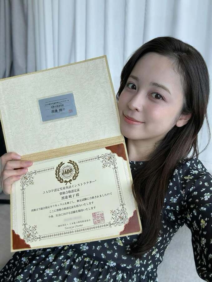 フリーアナウンサーで、バスケットボール日本代表の渡邊雄太さんと結婚して、1月に第1子妊娠を報告した久慈暁子さんが4月9日、自身のインスタグラムを更新。『児童英語インストラクター』の資格を取得したことを明かしました。