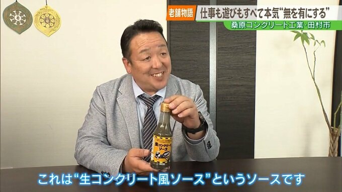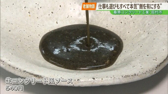 --桒原さん「これは“生コンクリート風ソース”というソースです」。