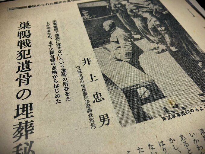 井上は、11月9日には横浜に出かけて、久保山火葬場の飛田美善場長に会っている。飛田場長の話では、「久保山火葬場は終戦直後、連合軍に接収され、1948年に解除となったが、そのあともスガモプリズンの刑死者が火葬されるときには、はじめから終わりまで米兵による監視がついた。1948年10月以前に死刑となった人たちの遺体は、米軍によっていったん別の場所に仮埋葬されていて、のちに掘り出され、あらためてここで火葬にふされた」ということだった。