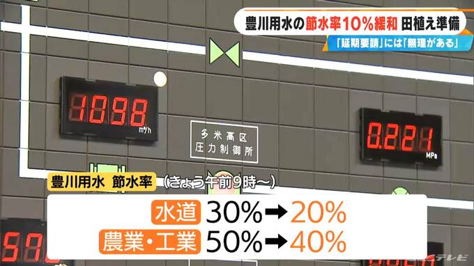 きょう午前9時、豊川用水の節水率は10%ずつ引き下げられ、水道用水は20%、農業・工業用水は40%になりました。