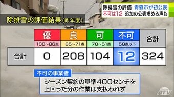 【一覧・全掲載】青森市が除排雪業者の評価結果を初公表 50点以下の「不可」となったのは12の工区と路線 「良」は208 「可」は104 あなたの地域にはいつ除排雪が入った? 【除排雪業務成績評定】 5分前