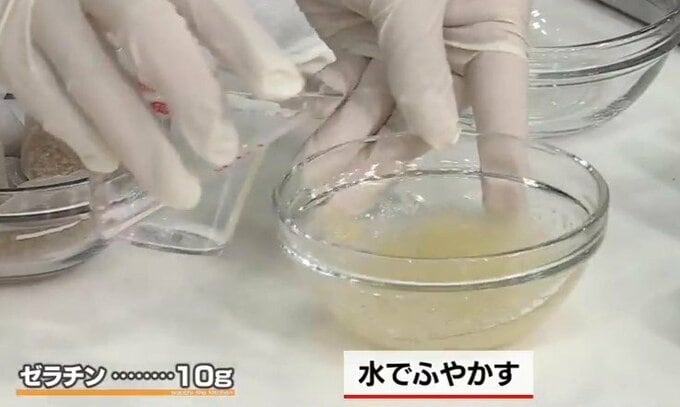 1.市販のゼラチンを、商品に表示してある分量の水でふやかす。