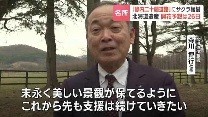 北海道遺産に選ばれている日高の新ひだか町の「静内二十間道路桜並木」で、サクラの植樹が行われました。