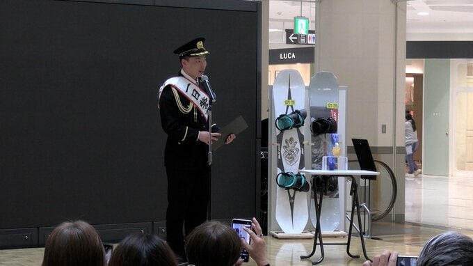冬季五輪のスノーボード男子ビッグエアで金メダルを獲得した木村葵来選手が一日警察署長に就任しました。