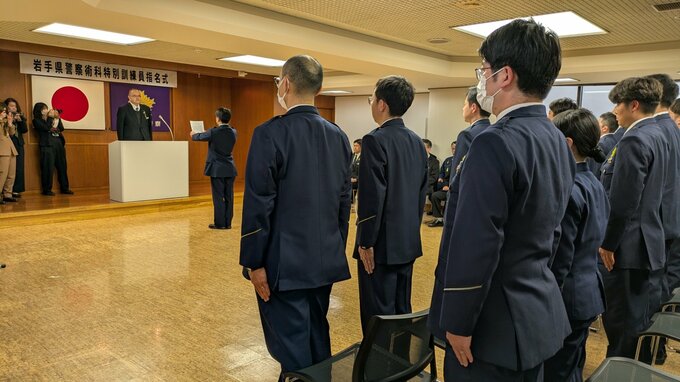 岩手県警を代表して剣道や柔道などの鍛錬に集中的に取り組む警察官「術科特別訓練員」の指名式 盛岡市 IBC岩手放送 2026年4月10日(金) 15:58 国内 岩手県警の代表として剣道や柔道などの鍛錬に集中的に取り組む警察官、「術科特別訓練員」の指名式が行われました。 【画像はこちらから】 「術科特別訓練員」に指名されたのは、柔道や剣道、逮捕術や拳銃の技能に優れた警察官56人です。