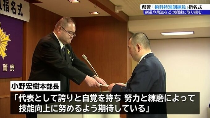 県警本部で行われた10日の指名式では、訓練員1人ひとりの名前が呼ばれたあと、小野宏樹本部長から代表者に指名書が手渡されました。