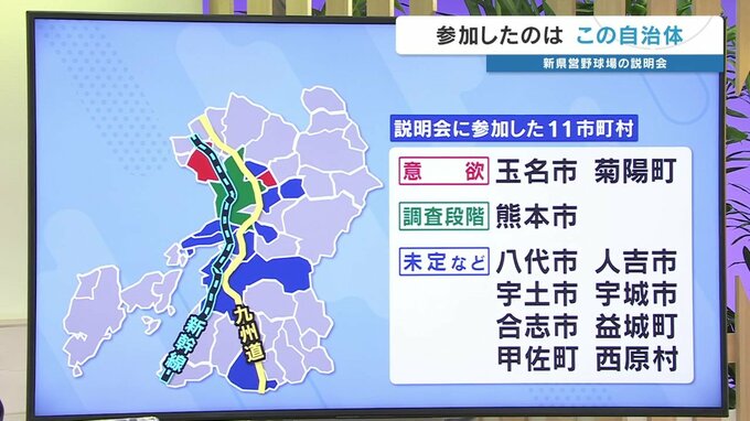 熊本県が募集する新たな県営野球場の候補地については、これまでに複数の自治体が誘致に意欲を示していますが、今日(4月10日)に説明会が開かれ、11の市町村が出席しました。