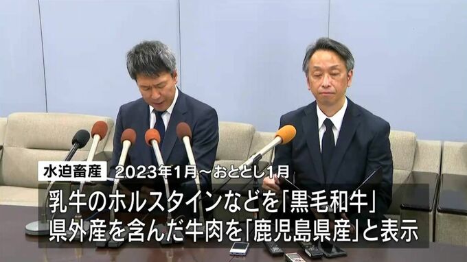 水迫畜産は2023年1月からおととし1月までの間、乳牛のホルスタインなどを「黒毛和牛」と表示したり、県外産を含んだ牛肉を「鹿児島県産」と表示したりしていました。