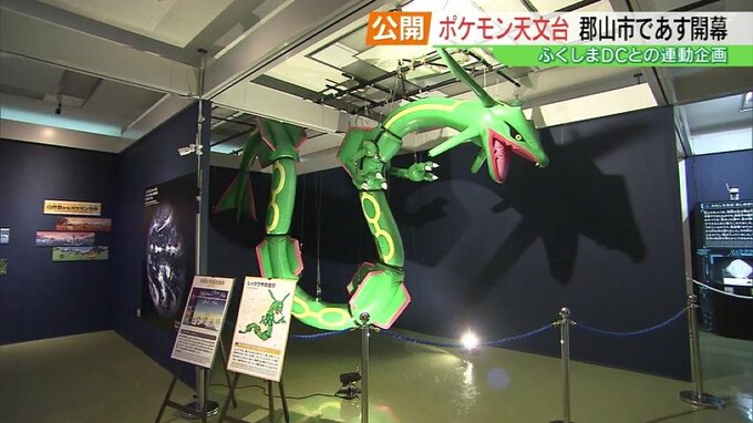 この催しは、国立天文台とポケモンなどが連携して開き、神奈川県相模原市に次いで郡山市は全国2か所目の開催です。ふくしまデスティネーションキャンペーンと連動した企画にもなっています。会場には、宇宙と関わりがあるポケモンおよそ50種類と一緒に、宇宙の不思議や宇宙研究の最新技術を楽しみながら知ることができる展示が並んでいます。
