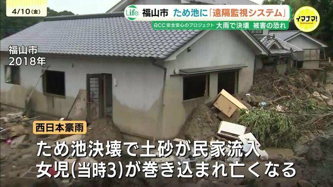 福山市では2018年の西日本豪雨で、ため池が決壊。土砂が民家に流れ込み、当時3歳の女児が巻き込まれて亡くなっています。ため池の決壊はここを含めて市内7か所にのぼり、このほか58か所で損壊する被害が出ました。