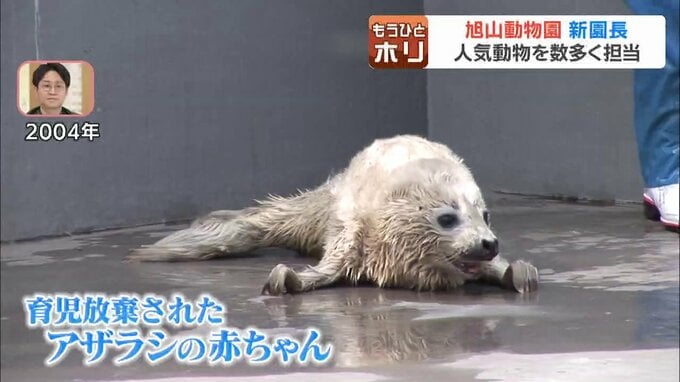 あざらし館の初代リーダーの時は、育児放棄されたアザラシの赤ちゃんを初めて人工哺育で育てました。(2004年)