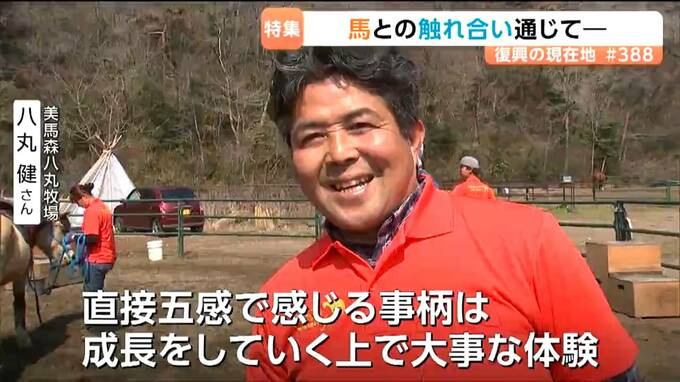 牧場を経営する八丸健さん。岩手県盛岡市から移住し、8年前、この牧場を開設しました。心を癒し、情操教育にもつながる馬との触れ合い。