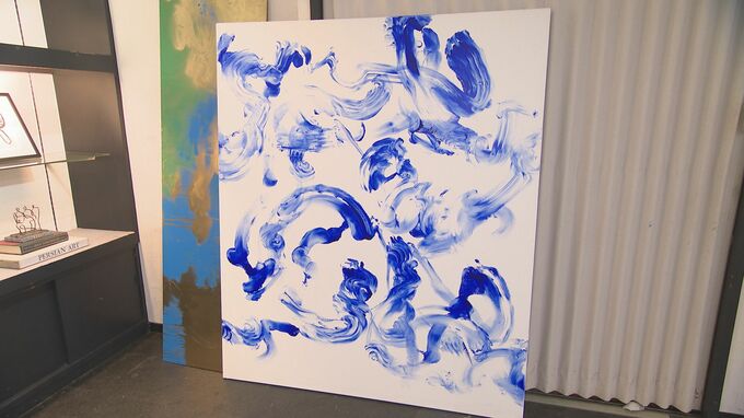 大森さん「これは自分の足で描いています。足の裏に絵の具をつけて描いています。足なら使ったことがないから、ありのままの自分が出せるんじゃないかと思って描いた。」