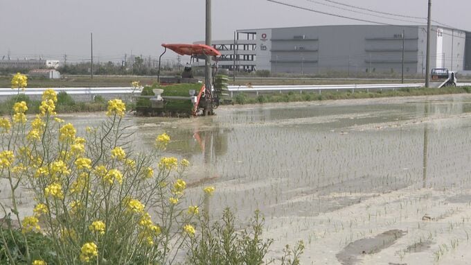 愛知県弥富市で、約145ヘクタールの田んぼを管理する農業法人「鍋八農産」。4月から田植えが始まり、きのうは約3000平方メートルの田んぼで、早場米の「あきたこまち」の苗を植えていました。
