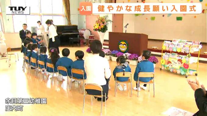 庄内町の余目第三幼稚園ではきょう入園式が行われ、新しい園服に身を包んだ13人が新た生活をスタートさせました。
