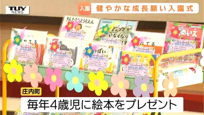 山形県庄内町では入園式が行われ、子どもたちの健やかな成長を願い町から絵本がプレゼントされました。