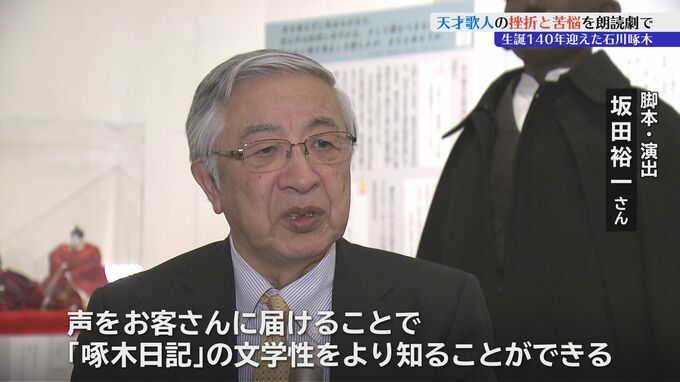 「声をお客さんに届けることによって啄木日記の文学性というものをより知ることができるんじゃないかなと。やっぱり歌人ですね。短歌は声に出して読むものだと言いますが、同じだと思います」
