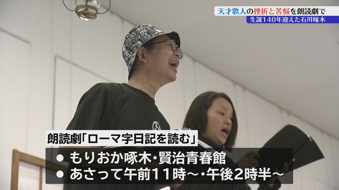 朗読劇「ローマ字日記を読む」は12日にもりおか啄木・賢治青春館で午前・午後の2回上演されます。