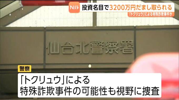 2026年1月までに、仙台市内の男性がSNSで知り合った何者かに現金約3200万円を騙し取られました。警察が、トクリュウによる特殊詐欺事件の可能性も視野に調べています。特殊詐欺の被害にあったのは、仙台市青葉区に…
