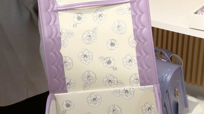 「今年の新色になります。キャンディパープルという紫系のお色で案内させていただいておりまして、内装を開けていただくとバラの柄になっておりまして。年々ポップに、特に女の子の方が色の幅っていうのが広がっている印象はすごく強く感じます」