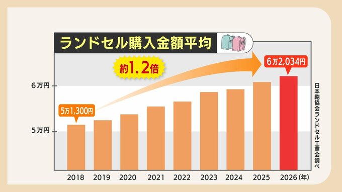 こちらの店でも物価高の影響などで昨シーズンと比べ1000円から2000円値上がりしているということですが、ランドセルの価格は年々上がり続けています。
