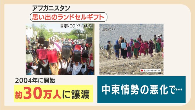 「アフガニスタン思い出のランドセルギフト」は、国際協力団体「ジョイセフ」が教育の機会に恵まれないアフガニスタンの子供たちへ日本で不要になったランドセルを収集し、修繕・清掃後に現地へ贈る取り組みです。
