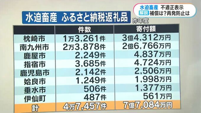 県内では8つの市と町が水迫畜産の商品を返礼品として扱っていて、寄付件数は4万7457件、寄付額は7億7084万円に上っています。