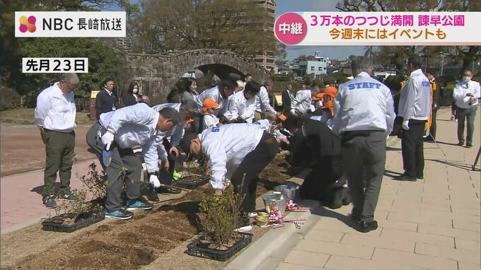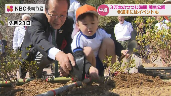 4年前に「諫早公園つつじ満開プロジェクト」を始動し、ツツジの新芽を挿し木から大切に育ててきました。
