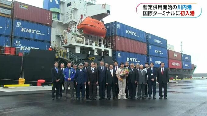 今月から暫定供用が始まった川内港・唐浜地区の国際物流ターミナルに10日、コンテナ船が初入港しセレモニーがありました。川内港・唐浜地区では現在、国と県が国際物流ターミナルの整備を進めています。この整備で…