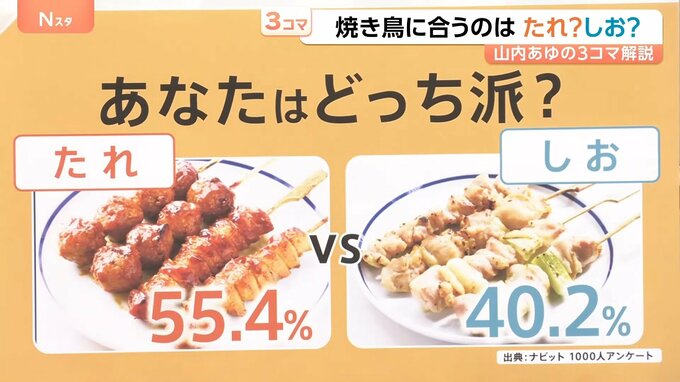 焼き鳥は「たれ」「しお」、どっち派が多いでしょうか?
