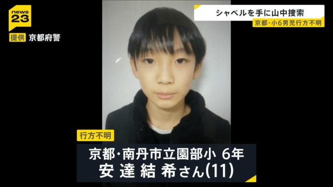 京都府南丹市立園部小学校6年の安達結希さん(11)は、先月23日に父親の車で学校のそばまで送り届けられたあと、行方不明になっています。