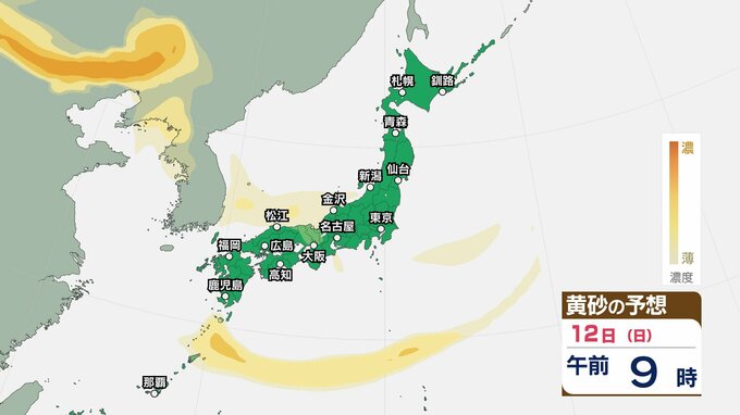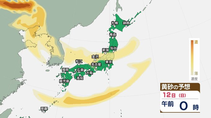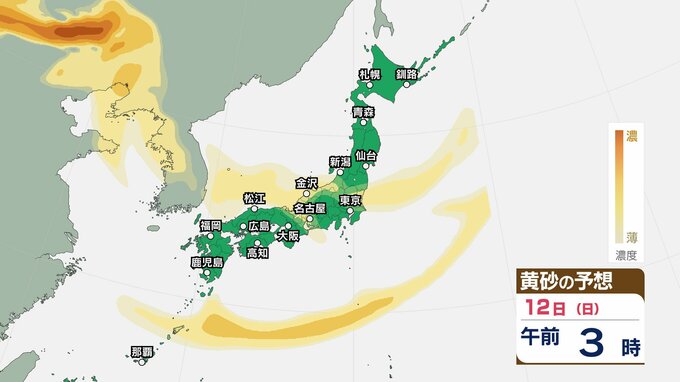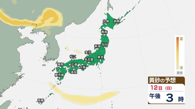 【黄砂情報】きょう11日(土)からしばらくの間「日本列島」に飛来か…九州・中四国・近畿・東海・関東・東北など 広い範囲で影響の可能性 11日(土)~14日(火)黄砂シミュレーション【気象庁 11日現在】 2時間前