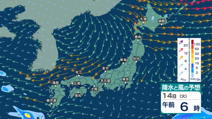 【 今後の雨 】北日本では暴風に警戒 山地では積雪に? 週明けも西日本や太平洋側を中心に雨となる所も【12日(日)~16日(木)の雨シミュレーション・11日午後10時更新】 新潟放送 2026年4月11日(土) 22:00 14日(火)の雨のシミュレーション